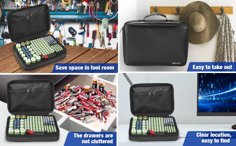 - 2.KEEPING BATTERIES SAFE AND NEAT - Better storage case make battery organizing easier .Outer layer of anti-fire silicone glass fiber cloth around ABS material support makes the case extremely durable. Waterproof and fireproof. Cut out foam keeps the battery in stationary place .Due to the scientific l design ,you can easily and quickly remove the battery you need